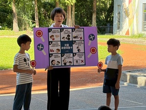 幼兒園的小朋友則與文建站夥伴一起動手做月餅,藉由體驗傳統文化,增進親子互動與節慶氛圍。學務組長陳睿苓老師也進行「交通安全宣導」,提醒學生遵守交通規則,強化過馬路與騎乘安全觀念,確保上學與生活安全。